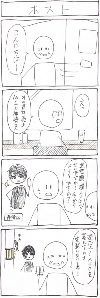 Home › 2026年 › ホスト 2026-03-24 ホスト 解説 ①お爺さんが出勤してくる。 ②お爺さんの声が売上No.1の神崎さんの声をしていた。 ③店に出ている時の顔と全然違うので、今からメイクするのかと聞く。 ④神崎さんはイケメンすぎてモテるため、普段老けて見えるメイクをしている。 関連記事 スカウト 退職代行 正夢 人間アイスドリル 商売上手 退職代行 スカウト